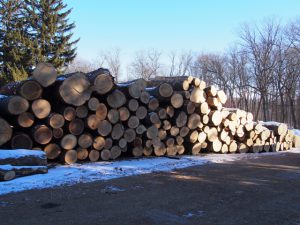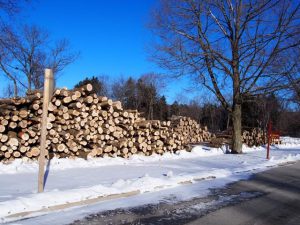 Logs stacked in clubhouse parking lot