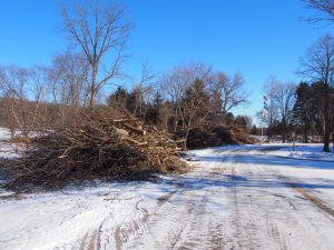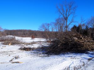 Brush pile west end of park, looking north toward barn