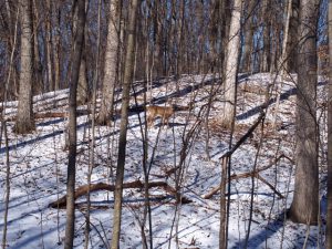 Whitetail deer enjoying a winter day in the park