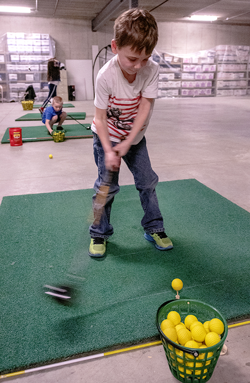 Ryan Smerz, 7, of Pleasant Prairie, practices his swing duringthe golf clinic. Source: Village of Somers.