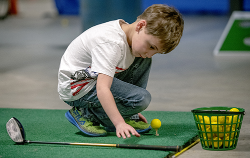 Ryan Smerz, 7, of Pleasant Prairie, resets his tee during the golf clinic. Source: Village of Somers.