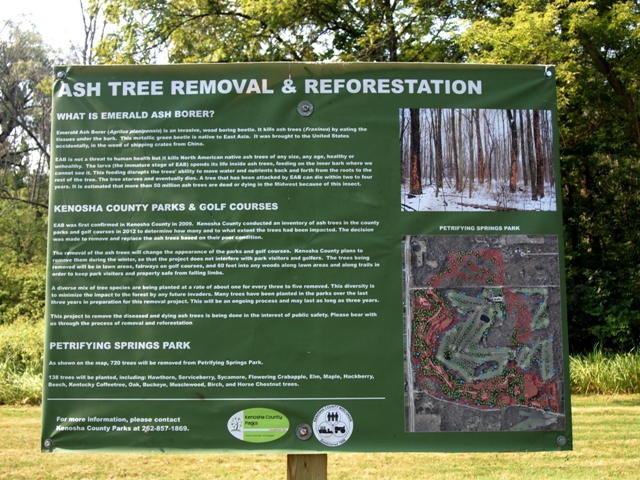 Ash Borer Sign in Petrifying Springs Park, Somers, Wisconsin