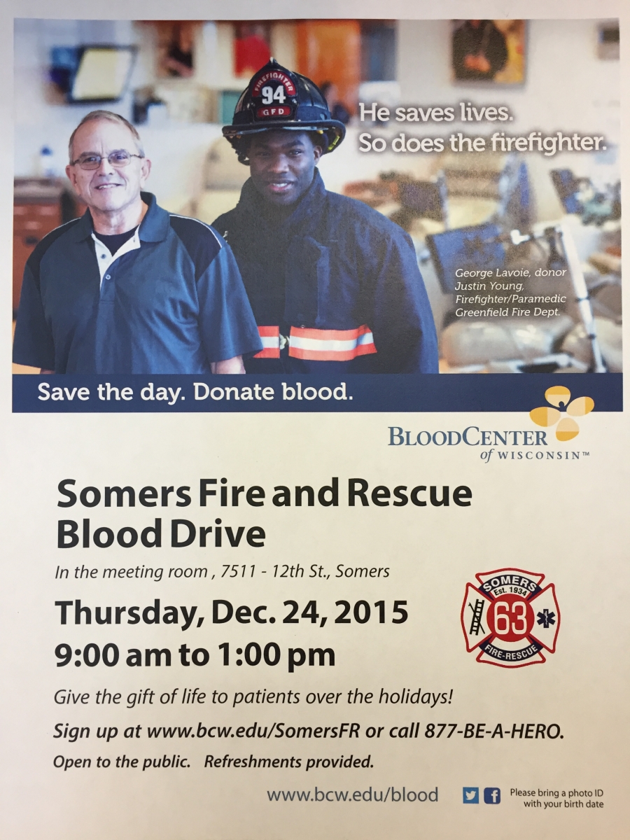 Blood Drive at Somers Fire & Rescue Department December 24th