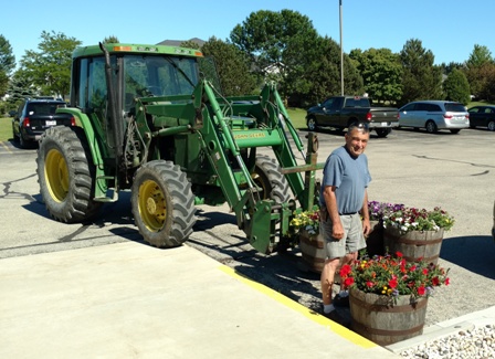 We know that the Somers Parade is just a few weeks away and the summer weather has finally arrived when they see Ron Birchell drive his John Deere tractor down Highway E to deliver beautiful planters of colorful flowers pots to the Somers Village/Town Hall. Everyone who works at the Village/Town Hall looks forward to Ron’s delivery!