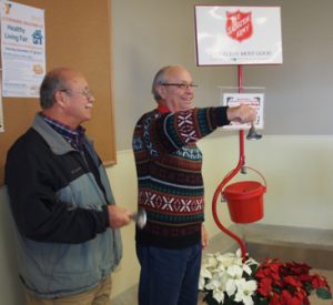 The Salvation Army of Kenosha launched its annual Red Kettle Christmas Campaign on Friday, November 11, 2016 at the Somers Festival Foods, located on Highway 31 and Highway S, from 12 noon to 2:00 PM. The Red Kettle Christmas Campaign Honorary Chair was Village of Somers President George Stoner. Joining Stoner was Jim Smith, former Chairman of the Town of Somers Board of Supervisors, and other members of the Somers staff.