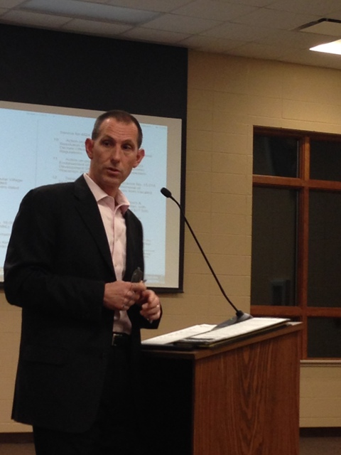At the Village Board meeting held January 26, 2016, Jim Smith, former Town of Somers Chairman, expressed his concerns about the EVOC track.  Responding to Mr. Smith’s comments was Mark Molinaro, current Chairman of the Town of Somers and an architect at Partners in Design Architects in Kenosha.  Molinaro is the principal in charge of Gateway’s $1.5 million EVOC project.