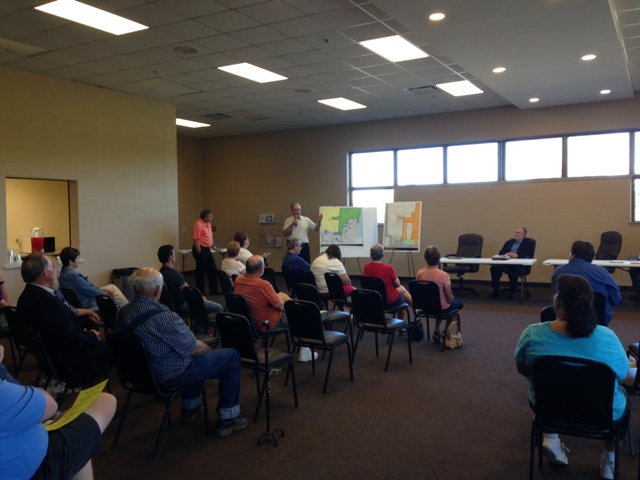 William Morris, Village/Town Administrator, answered questions relating to annexation and the impact of zoning, land use, tax rates, and services.  Morris reassured those attending that every resident in the Village and Town will receive, and continue to receive, the same high level of service. “If you call 911, we will respond. Period.  If you have a problem with sewer, water, or garbage pick-up, we will respond.  Whether you live in the Village or Town, the staff in the Village/Town Hall is here to serve all our residents,” said Morris.  Those residents who wish to annex to the Village will keep their existing zoning.  Additionally, annexation does not change the Smart Growth Neighborhood Plans.