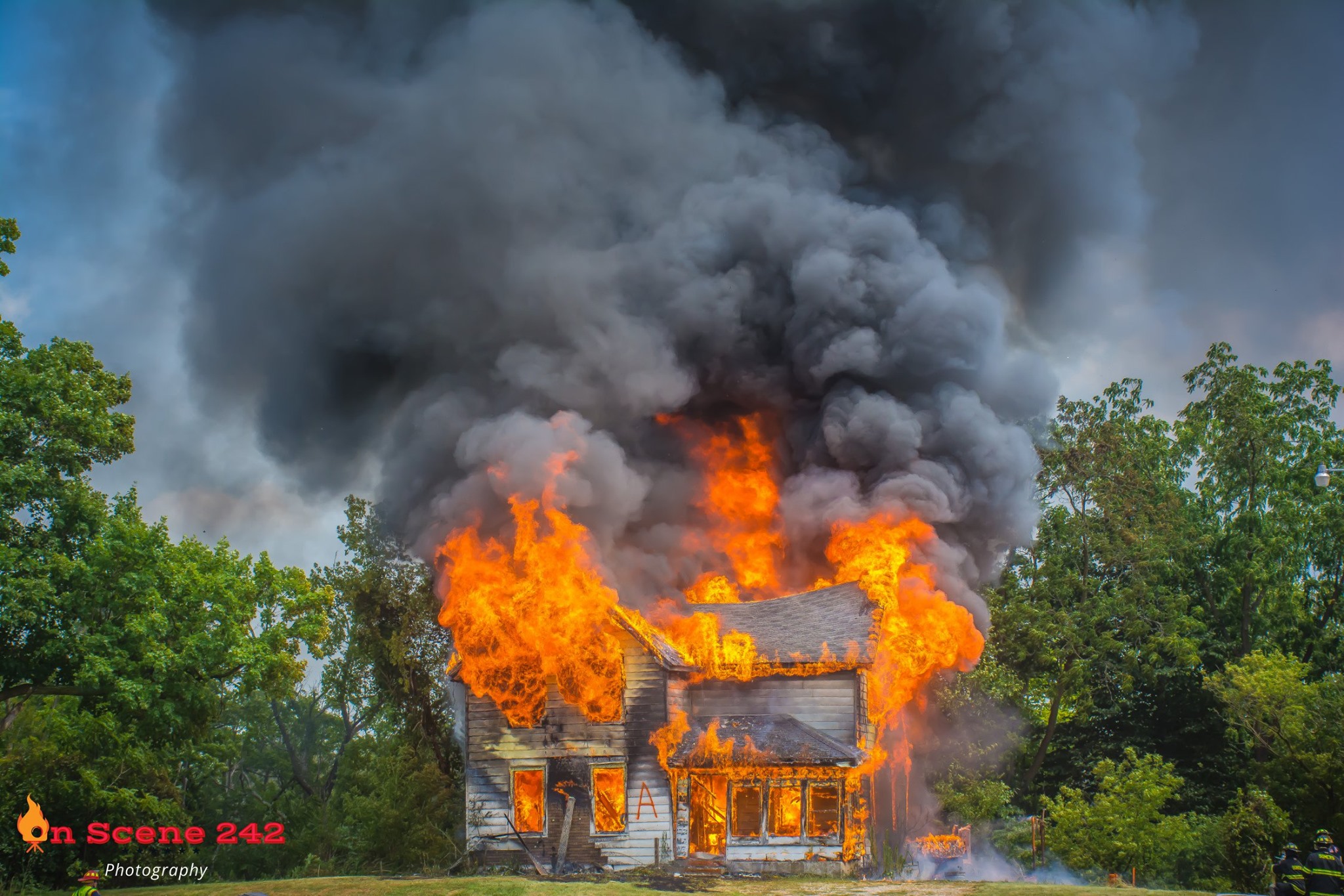 The property used foir training is fully engulfed in flames. Photo courtesy of On Scene 242.