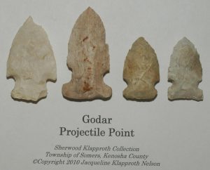 Godar Projectile Point (Middle Archaic Period 6,000 – 3,000 BC) found on the Klapproth Farm, Somers, Kenosha County