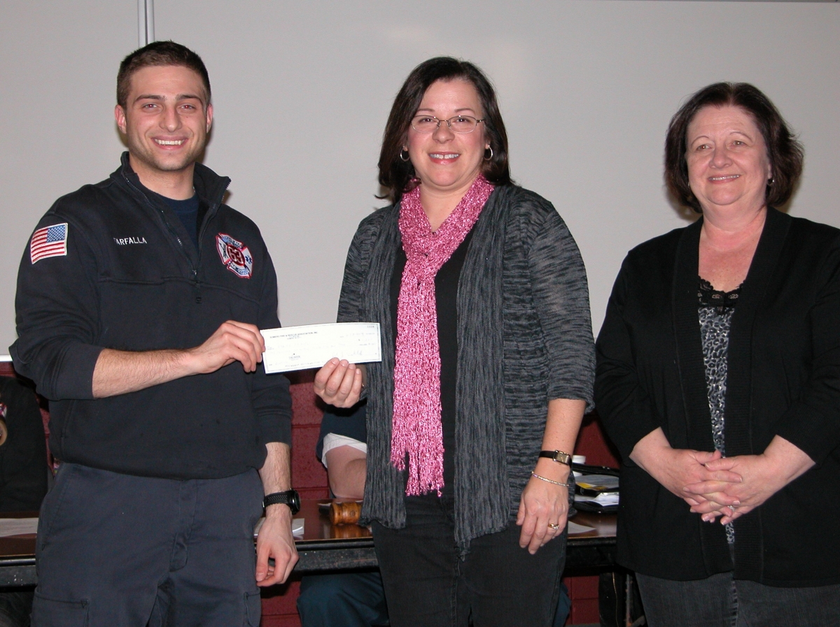 Firefighter Jake Farfalla of the Somers Fire and Rescue Department presented a check in the amount of $1,235.00 to Lisa Castelli, Vice President and Debbie Misurelli, President of Circle of Hope, a non-profit Kenosha organization that supports breast cancer patients. The Somers Fire and Rescue Department members raised money for the organization through the sale of pink Somers Fire Dept. t-shirts throughout 2013. Pink is the widely used color to commemorate the fight against breast cancer. All the money donated to Circle of Hope is used to help breast cancer survivors. The support group has been around for nine years this May and the non-profit is five years old. For more information, visit the Circle of Hope website. The check was presented at the Somers Fire and Rescue Association’s Feb. 18th meeting. The Somers Fire and Rescue Association is a nonprofit organization that supports the Somers Fire and Rescue Department’s charitable and community service endeavors and also raises money to benefit the department.