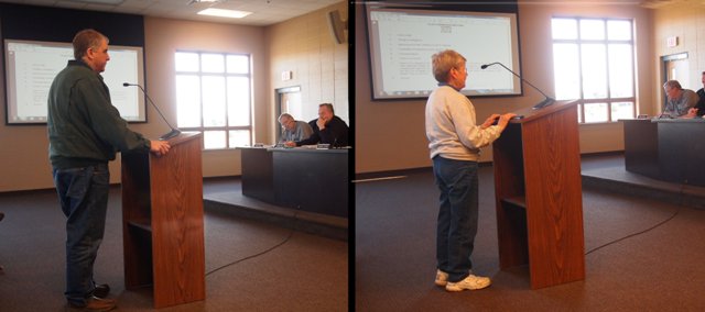 Glenn Fenske (left) and Gloria Clubrilo (right) spoke to the Plan Commission on April 13, 2015 regarding their concerns of the proposed development and the impact on their properties regarding flooding and water management. Both support the development but appealed to the Plan Commission and the representatives of First Industrial and Pinnacle Engineering Group to engineer the development to address the water issues. Chubrilo, a property owner adjacent to the proposed site expressed concern about removing top soil, excavating activity, and compromising old drainage tiles that help drain her property. Fenske, whose family has farmed in Somers for four generations, is the owner of an adjacent 140-acre parcel which is currently crop farmed. He stated that flooding will have a detrimental impact on his crop yields which in turn will impact the value of his property in the future.