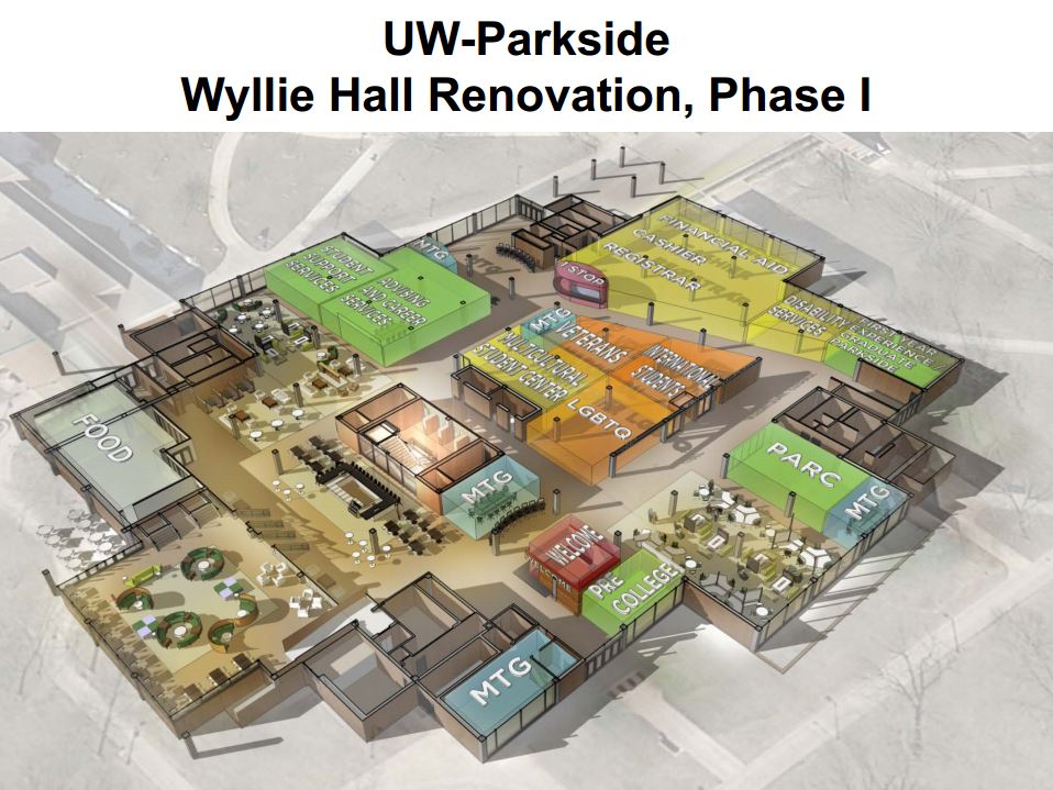 In August, the UW Board of Regents included more than $29 million in its proposed UW System 2015-2017 capital planning budget in support of the Wyllie Hall Renewal and Academic Success project at the University of Wisconsin-Parkside. The proposed UW System budget now awaits legislative approval for inclusion in the 2015-2017 Wisconsin state budget. The project plan calls for renovation of more than 100,000 square feet of Wyllie Hall, originally constructed in 1972. The project would create a fully integrated and accessible student services area to support academic success. The establishment of a Learning Commons will provide a collaborative and integrated environment to accommodate the learning needs of students now and well into the future.